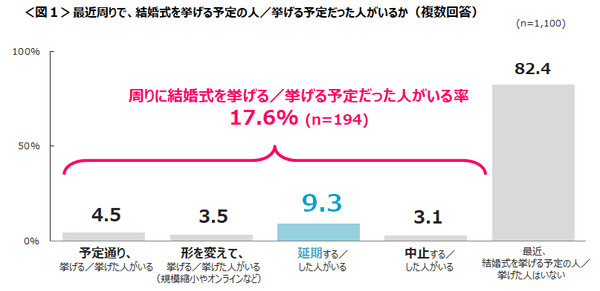 最近周りで、結婚式を挙げる予定の人/挙げる予定だった人がいるかと聞いたところ、2割弱が該当。