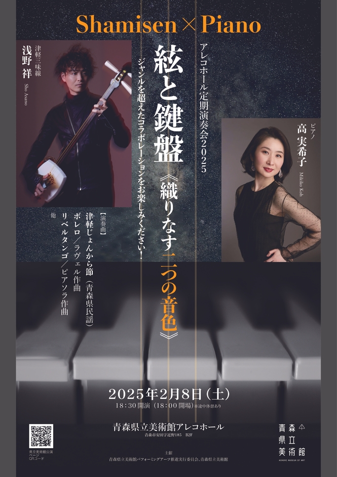 津軽三味線とピアノの異色コラボが生む唯一無二の音色! 青森県立美術館アレコホール定期演奏会2025チケット販売開始