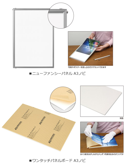 長年親しまれている写真展示に便利なパネル「ニューファンシーパネル」「ワンタッチパネルボード」にA3ノビサイズを新発売!
