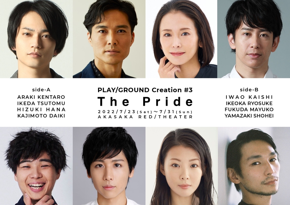 PLAY/GROUND Creation(代表:井上裕朗)主催、PLAY/GROUND Creation #3『The Pride』が2022年7月23日(土)〜7月31日(日)に赤坂RED/THEATER(東京都港区)にて上演されます。チケットはカンフェティ(運営:ロングランプランニング株式会社、東京都新宿区、代表取締役:榑松 大剛)にて6月5日(日)10:00より先行発売開始です。