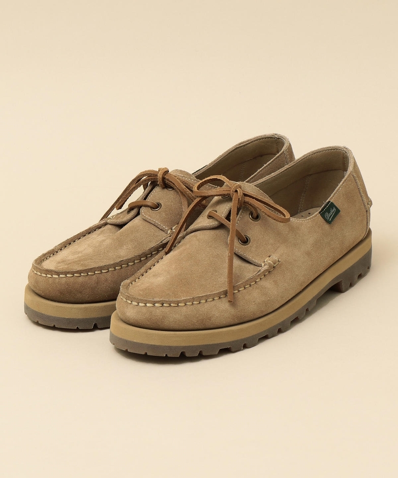 「Paraboot」のモデルDOMINGUEをベースに、ブラックレザー(フォールノア)とサンドベージュスエードレザー(ベロアセーブル)に素材を乗せ変えた特別仕様。