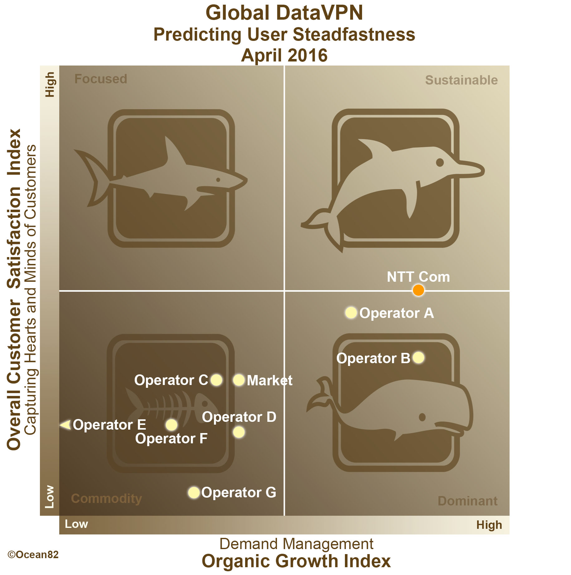 NTTコミュニケーションズ株式会社(略称:NTT Com)は、OCEAN82 Limited(本社:イギリス マンチェスター、以下 Ocean82社)が実施した、第20回「国際データ通信サービスに関するグローバル顧客満足度調査(Voice of the Customer:Global Data VPN)」の顧客満足度と将来の成長性の双方でプロットされるポジショニングにおいて、5度目となる総合顧客満足度1位を獲得しました。