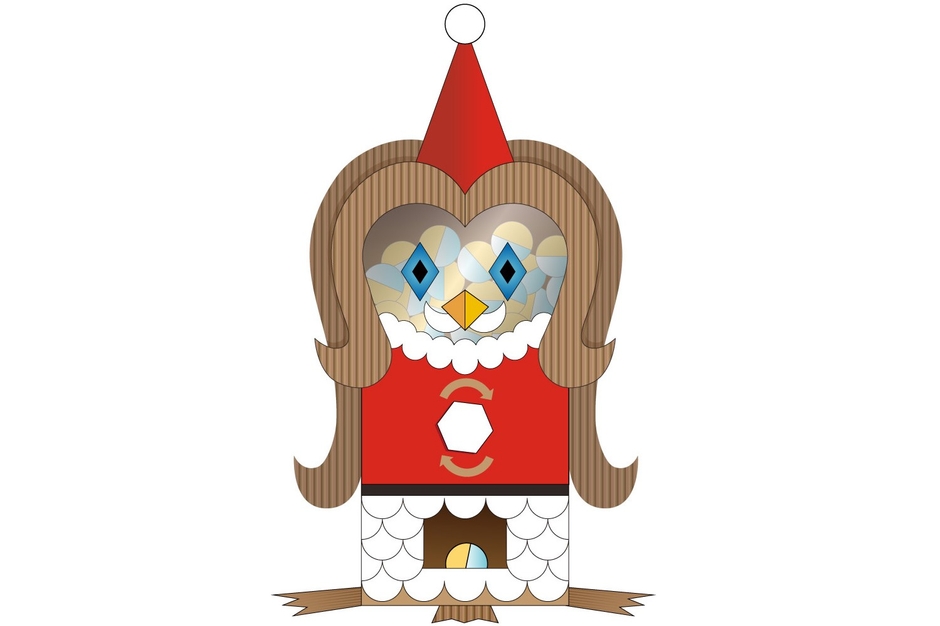 ダンボールクリスマスでは、高さ2mの「ダンボールクリスマスツリー」が登場します。都電や赤ちょうちん、日本酒のとっくりと、大塚の街の名物や「OMO」の文字をくり抜いて模様にしています。さらに、同じくダンボールで作られたトナカイや雪の結晶や星などをモチーフにしたオーナメントの装飾もクリスマス気分を盛り上げます。