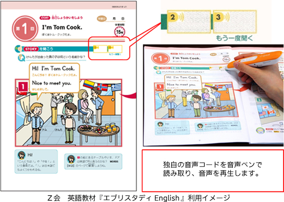 *1 音声ペンとは、先端のカメラで書籍などに記載されたドットコードを読み取り、対応する音声を内蔵スピーカーで再生できるツールです。