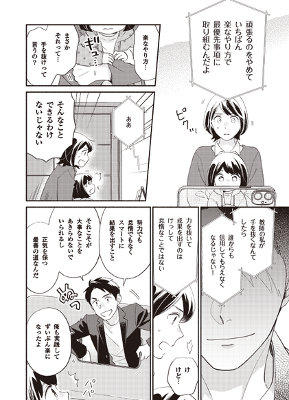 しかし、夫は海外を飛び回る仕事をしているため、子育てはワンオペ。仕事とプライベートが重なると徐々に余裕がなくなり、やりたいことをやっているはずなのにどんどん追い詰められていきます。「エッセンシャル思考」を実践してきたはずなのに、結果的に自分自身がすごく苦しい状態だったことに気づく……。