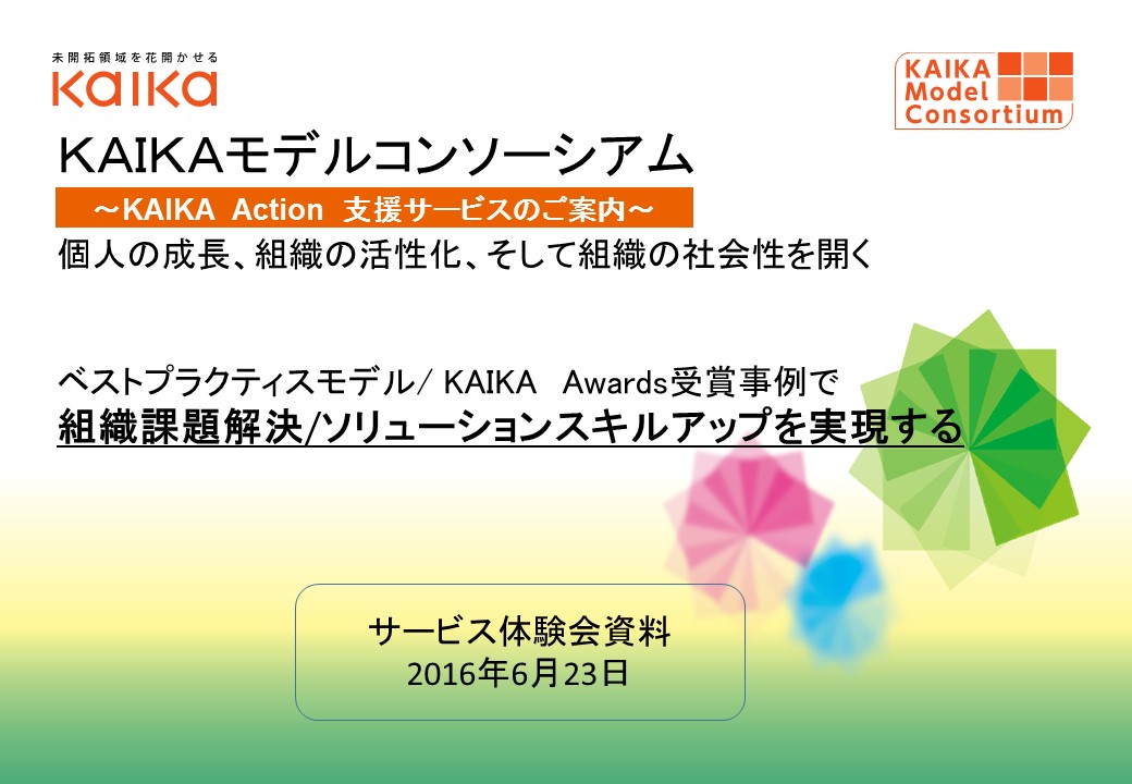 (*) 一般社団法人日本能率協会が概念定義した「個の成長、組織の活性化、組織の社会性」を同時に実現するプロセス『KAIKA』(語源:開化・開花)を普及するプロジェクト(参考: http://kaikaproject.net/ )。