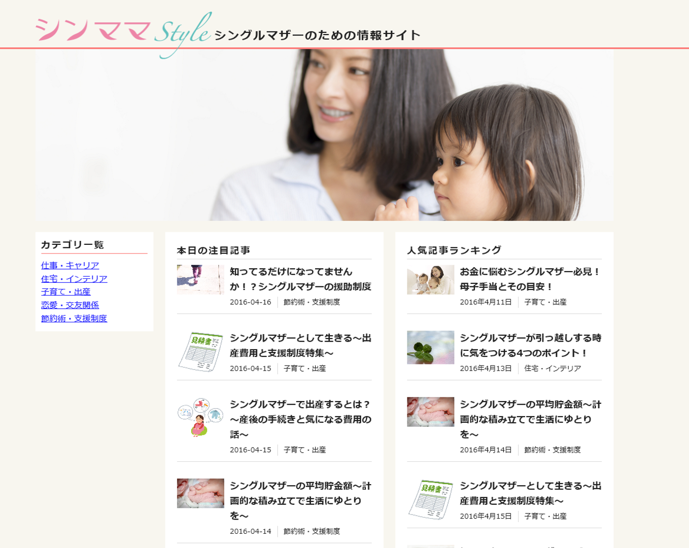 シングル―マザーの悩みや不安を解消する有益な情報を『シンママSTYLE』が配信いたします。