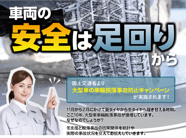 国土交通省より「大型車の車輪脱落事故防止キャンペーン」が実施されます!