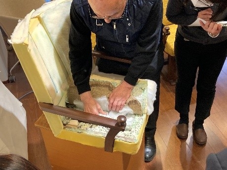 クラウドファンディングのリターン企画として開催した体験会では、宮本茂紀氏が実際にtroneチェアを分解しながら、
