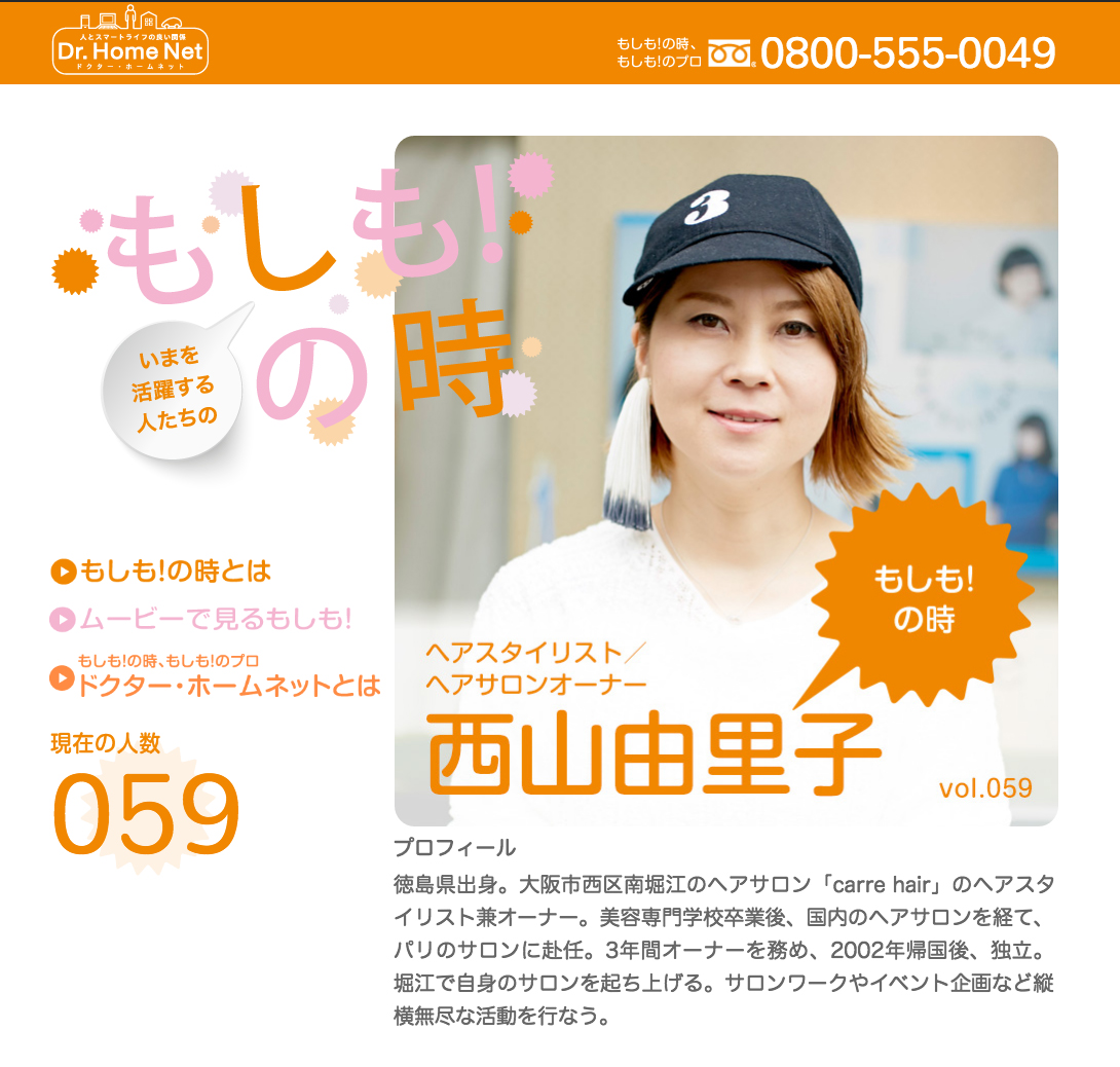 年間13万件以上のパソコン、スマホ、デジタル機器へのサポート実績をもつ日本PCサービス株式会社(本社:大阪府吹田市/代表取締役社長:家喜 信行/証券コード:6025)は、「ドクター・ホームネット」のスペシャルサイト< http://4900.tv/ >にて、ヘアサロンオーナー 西山 由里子さんの「もしも!の時」を新たに公開いたしました。