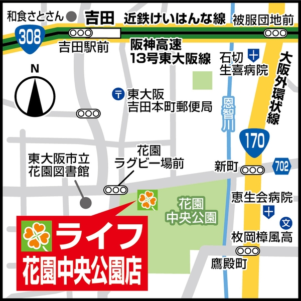 毎日のお買い物や公園利用に便利な地域ニーズを叶えるお店が誕生!9/17(土)、大阪府東大阪市に「ライフ花園中央公園店」がオープン