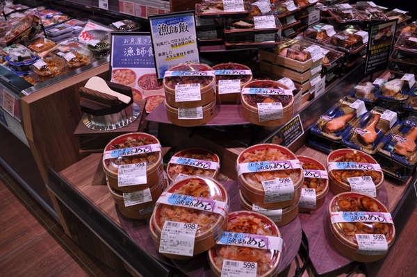 和風だしの炊き込みご飯の上に大きめの海鮮具材をゴロっとのせた魚屋ならではのお弁当をご用意いたします。