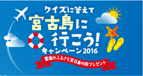 昨年度観光客が過去最高の50万人を突破した 宮古島旅行が当たる! 『クイズに答えて宮古島に行こう!キャンペーン2016』
