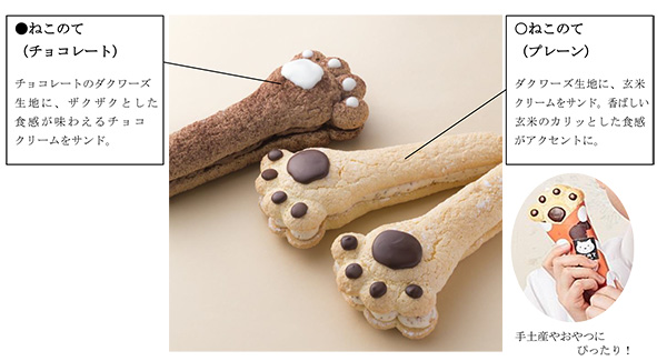 このスイーツは、2013年3月より販売開始し、3年間※で 約13万本を売り上げた人気商品。“猫好き”にはたまらない、肉球のキュートなフォルムと、ダクワーズ生地の軽い食感が特徴です。