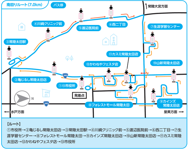 ■走行ルート : 常陸太田市役所、常陸太田駅や常陸太田市東部地区を周遊するルートを走行
