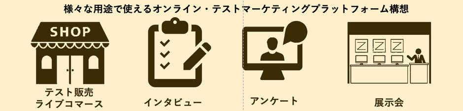 本事業を起点に、オンラインで完結するテストマーケティングのプラットフォームサービスを提供いたします。ライブコマースを活用し、誰もがより手軽にテストマーケティングを行える場として、起業家の事業開発の加速を支援します。