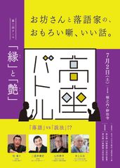 「思い通りにならないこと」を笑い飛ばして受け入れる『落語』と、「思い通りにならないこと」を受け入れることでむしろイキイキと生きようとする『仏教の説法』は、ともに庶民の暮らしを明るくする大切な文化だったはずです。本イベントでは、時を超え平成に蘇る「高座バトル」をお楽しみいただけます。
