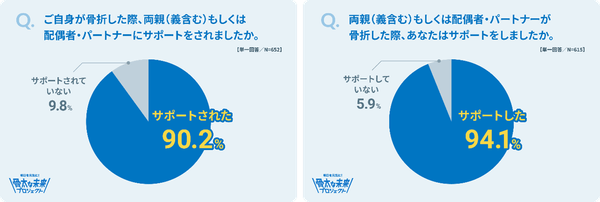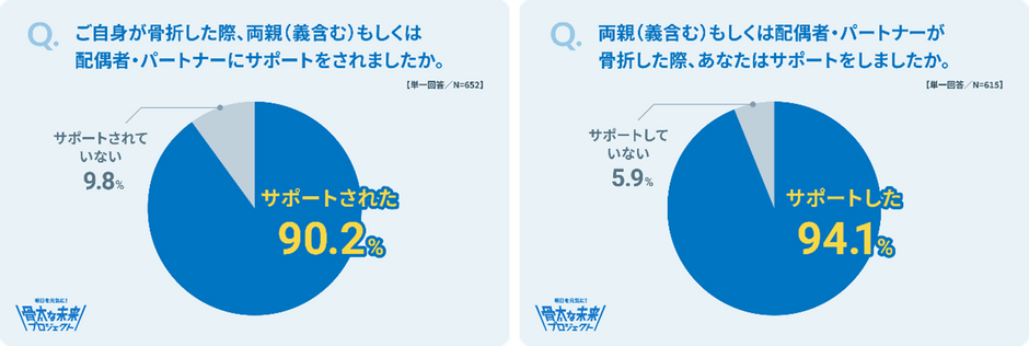 ■骨折後に家族やパートナーから何らかのサポートを受けた人は9割を超える。