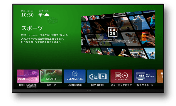 「飲食店のスポーツ上映」でDAZNとUSENが連携 DAZN初!スマートTVに「DAZN FOR BUSINESS」を搭載したセットプランの販売開始