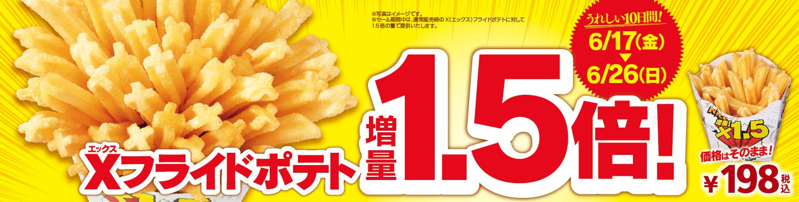 ~10日間限定!ポテトがおトク~ Xフライドポテト1.5倍増量セール!