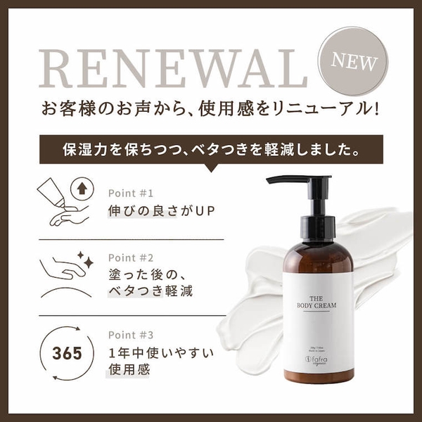1年中使いやすくリニューアル!『fafraオーガニック ボディクリーム』 7月3日より発売スタート!