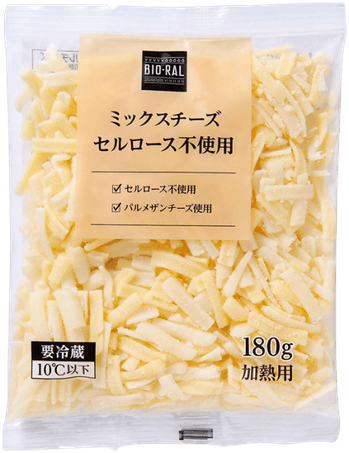 お子様から大人までみんな大好きなチーズ。そんな人気のあるチーズで、健康に気を遣った商品を作りたいと考え開発しました。セルロースを使用しない代わりに乾燥パルメザンを加えることで、チーズ同士がくっつくのを防ぎ、鮮度・味を守ります。さまざまな料理にご使用いただけます。