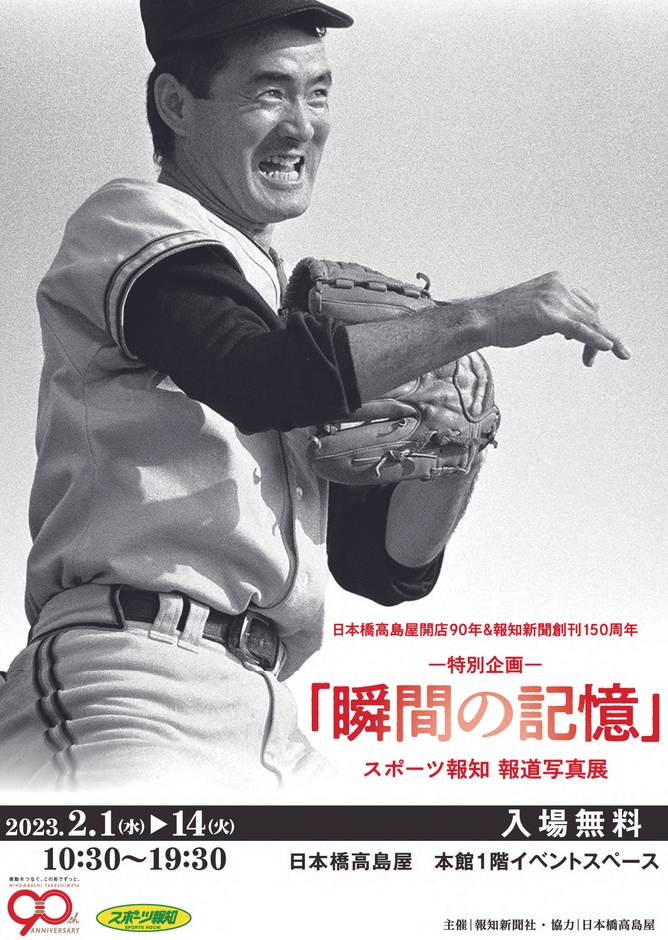 スポーツ報知を発行する報知新聞社(代表取締役社長・依田裕彦)は2月1日~14日に日本橋髙島屋で『日本橋髙島屋開店90年&報知新聞創刊150周年―特別企画―「瞬間の記憶」スポーツ報知 報道写真展』(入場無料)を開催します。昨夏に東京都写真美術館で開催した写真展から一部入れ替えを行い、95点を展示。最新のサッカーW杯カタール大会の写真も飾られています。25日からはメインビジュアルの巨大タペストリーが同店本館1階入り口正面に掲出されています。どうぞお越しください。