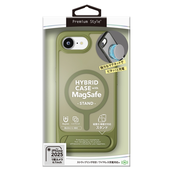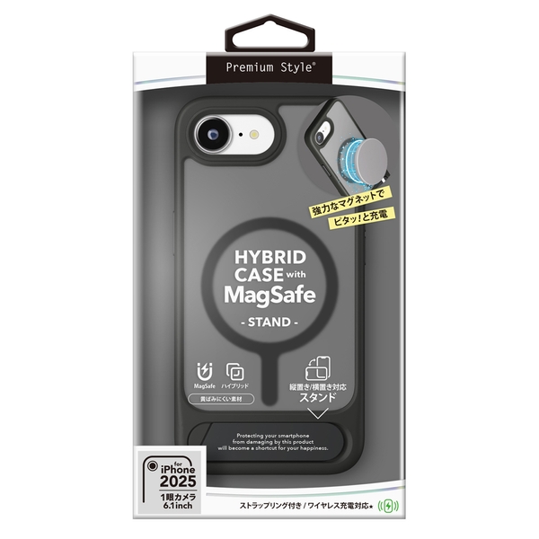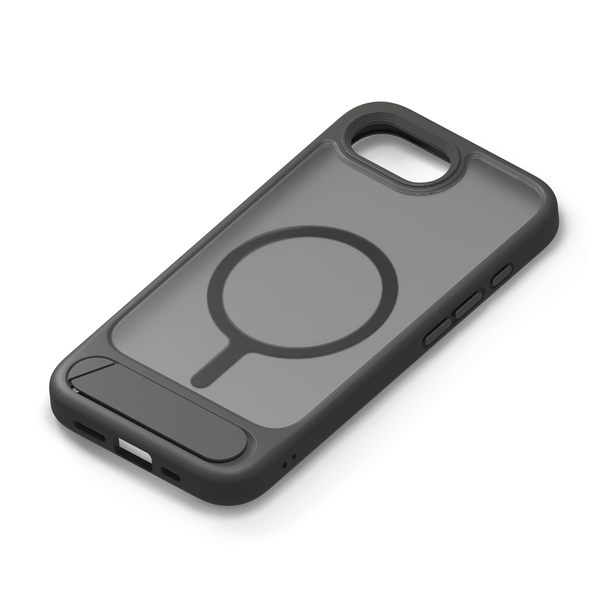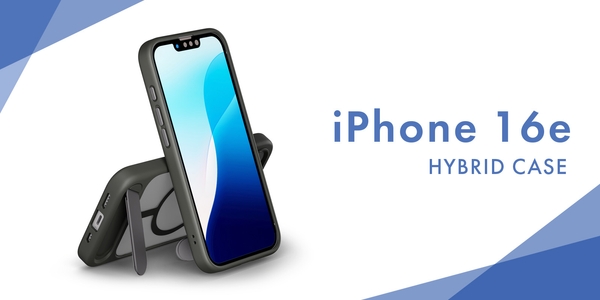 動画視聴に最適なスタンド付の各種MagSafeアクセサリーに対応したiPhone 16e用 ハイブリッドケースです。