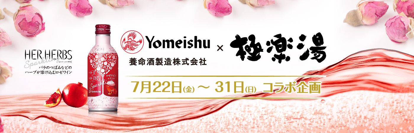 「HER HERBS スパークリング ロゼワイン&ザクロの湯」(コラボレーションの替わり湯)のほか、同キャンペーン期間中に対象商品をご注文頂くと、先着でプレゼントがもらえるキャンペーンや、養命酒製造の商品を使用したコラボメニューの販売なども実施いたします。(一部キャンペーン内容が異なる店舗がございます)