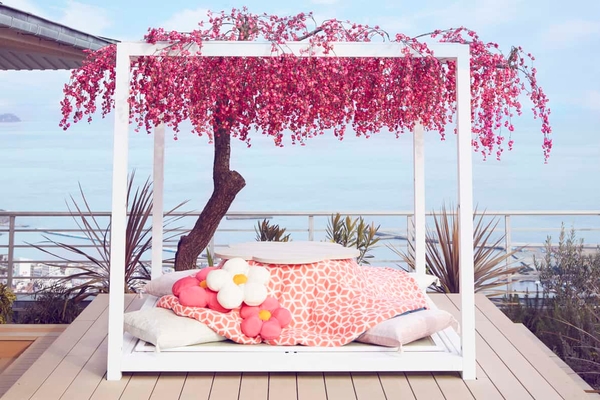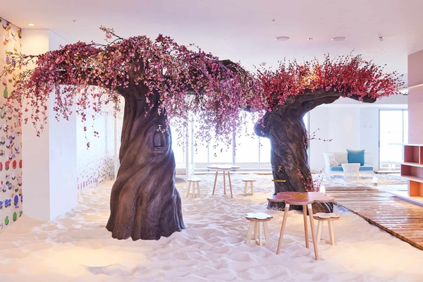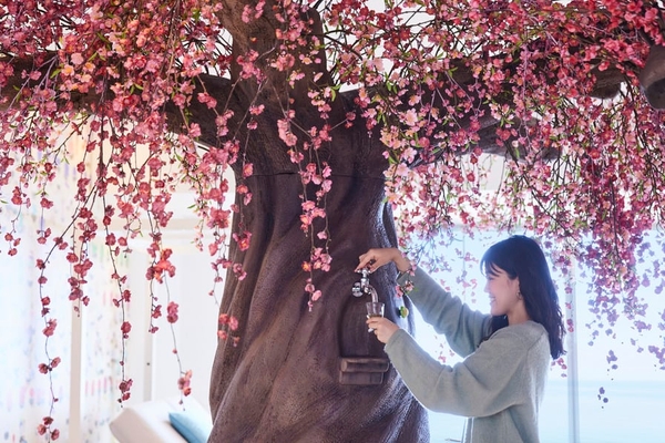 熱海の絶景と温泉に浸るリゾートホテル「星野リゾート リゾナーレ熱海」に、2023年1月6日、梅をとことん堪能し、一足早い春の訪れを感じる「あたみ梅カフェ」が登場します。春告げ草である梅をモチーフにした装飾で華やかに彩られた、ホテル最上階のカフェスペースです。2回目となる今回は、目でも舌でも梅を楽しめる「梅ジュースの出る木」に加えて、新たに「梅酒の出る木」が設えられます。梅に囲まれた華やかな空間で、梅ジュースや梅酒、梅をとことん味わえる「梅ジェラートプレート」などを堪能しながら、一足早い春の訪れを感じてわくわくすることができます。