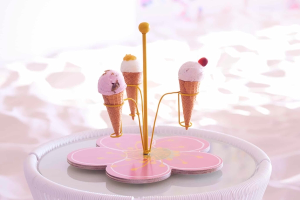 梅の果肉やジャム、ねり梅、カリカリ梅などを使用した3種のジェラートを堪能できるプレートです。ジェラートの食べ比べを通して、それぞれの風味や食感の違いを楽しみながら、梅をとことん味わうことができます。プレートの土台は梅の花、スタンド部分はめしべをモチーフとした可愛らしい見た目に思わずわくわくします。