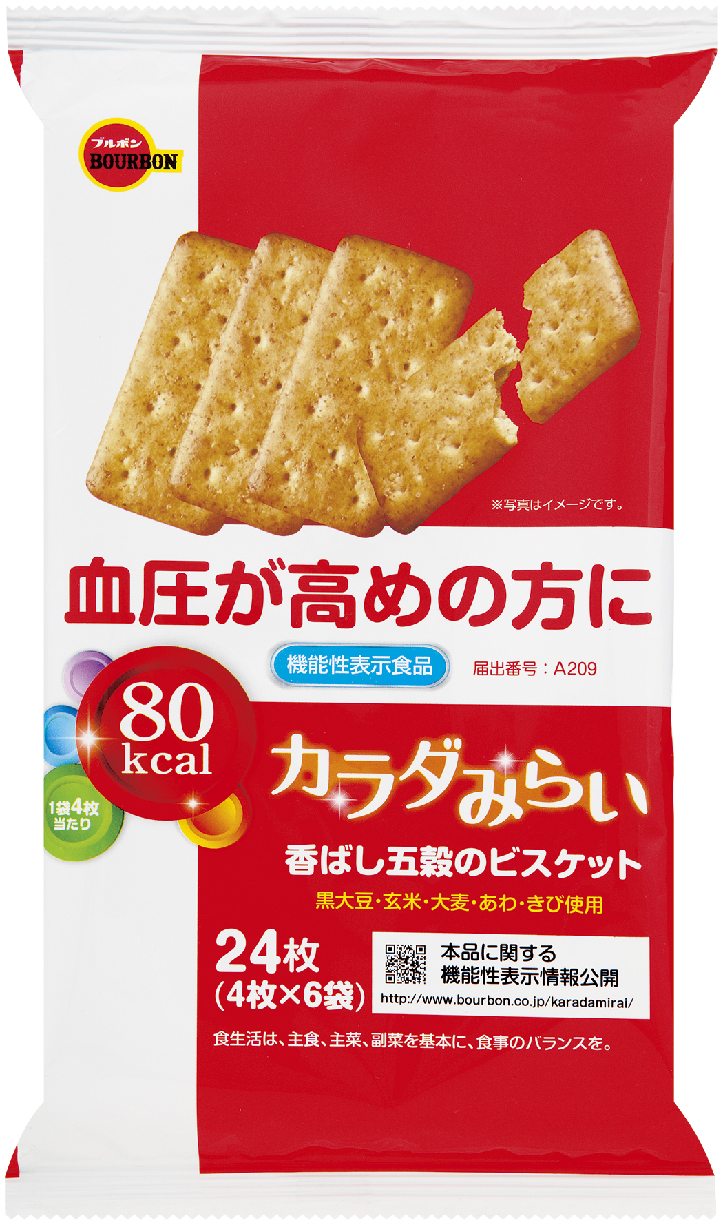株式会社ブルボン(本社:新潟県柏崎市、代表取締役社長:吉田 康)は、食品のもつ働きを分かりやすく表示できる機能性表示食品“カラダみらいシリーズ”で「カラダみらい 天然酵母仕込みのクラッカー」「カラダみらい 香ばし五穀のビスケット」「カラダみらい 豆乳仕立てのウエハース」3品の販売ルートを2016年7月19日(火)より拡大いたします。