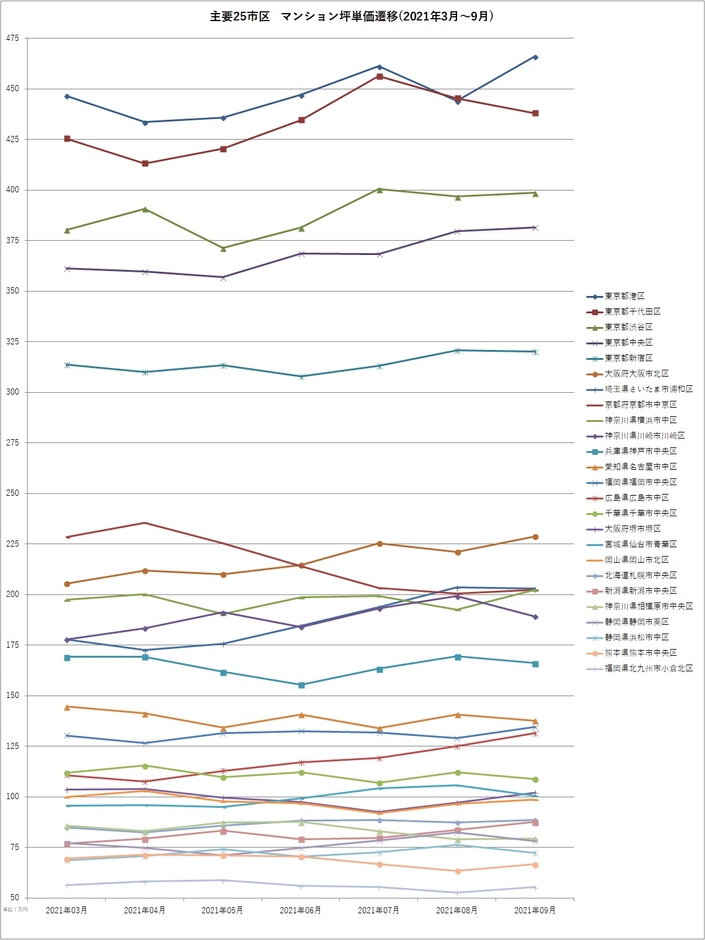 ■主要25市区 坪単価遷移(2021年3月~9月)