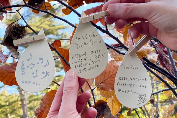 星野エリアでは、軽井沢の自然の中で気持ちよく過ごせる場を季節ごとに提供しています。そして、人と人とがゆるやかにつながり、豊かな気持ちになれることを願っています。このような考えに基づき、2021年に初めて本イベントを実施したところお子様からご年配の方まで、幅広い年代の方に楽しんでいただけました。そこで、芸術の秋を楽しむイベントとして2022年秋も実施することにしました。