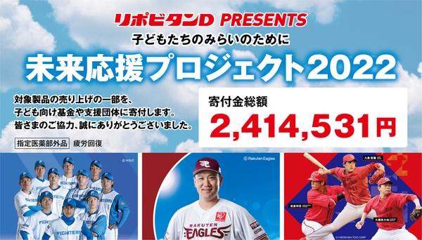 当社が発売する「リポビタンD」(指定医薬部外品)は、夢や目標に向かって前向きに頑張る人々を応援するコミュニケーション活動を行っております。その一環として、頑張る子どもたちをサポートする取り組みを行うにあたり、ご賛同いただいた株式会社ツルハホールディングス様ご協力の下、「子どもたちのみらいのために 未来応援プロジェクト」を2021年より実施しております。この度2022年秋より実施した本企画の実施店における対象製品の売上額をまとめ、その1%(2,414,531円)を当社より各団体に寄付させていただくこととなりました。