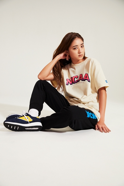 NCAAのロゴをグラフィカルに落とし込んだスポーティなTシャツコレクション。ユニセックス対応のゆったりとしたサイズ感で、男女問わず楽しめるアクティブな印象の一枚。