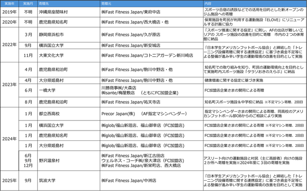 24時間年中無休のフィットネスジム「ANYTIME FITNESS(エニタイムフィットネス)」の国内マスターフランチャイジーとして、全国で直営店舗の運営およびフランチャイズ展開を中核事業とする株式会社 Fast Fitness Japan (本社:東京都新宿区、代表取締役社長:山部清明、以下当社)は、日本学生アメリカンフットボール協会(以下日本学生アメフト協会)と締結している「トレーニング設備寄贈に関する連携協定」に基づき、2025年9月、筑波大学アメフト部をはじめとする部活動に励む学生たちに、エニタイムフィットネスで余剰となったトレーニングマシンの寄贈を行いました。