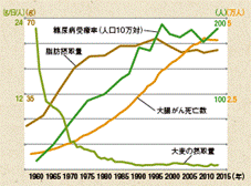 糖尿病の予防のため、積極に摂取することが勧められている食物繊維だが、高度経済成長期以降、日本人の食物繊維摂取量は急激に減少している。