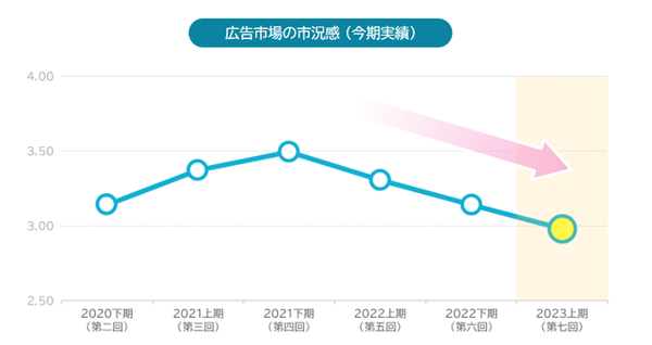 マーケターの回答によると、インターネット広告市場は2022年以降低迷した状態を抜け出すことができていない。市況感は未だ厳しい状況が続いている。
