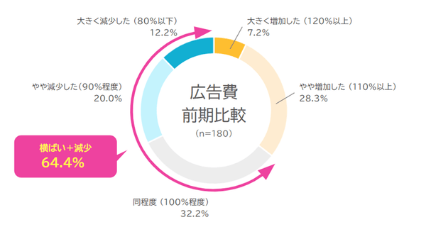 2023年上期のインターネット広告費は横ばい〜減少したとの回答が半数を超え64.4%となった。