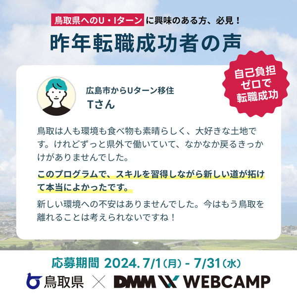 【DMM WEB CAMP×鳥取県】とっとりデジタル人材育成プログラムの受講者募集を開始しています