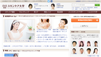 スキンケア大学は、月間のべ500万人が利用しているスキンケア情報メディア。健康情報メディアのヘルスケア大学と合わせて1300万人が利用する日本最大級の美容・健康サイトです。20代〜40代の女性ユーザーが多く、約1000人の医師が記事を監修しているのが特徴です。