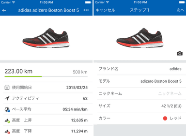異なるモデルを交互に使用する場合には、アプリ「Runtastic GPS ランニング&ウォーキング」でアクティビティ(ランニング、ハイキング、ウォーキングのいずれか)を終了後、どのシューズを使用して行ったのかを選択することができます。