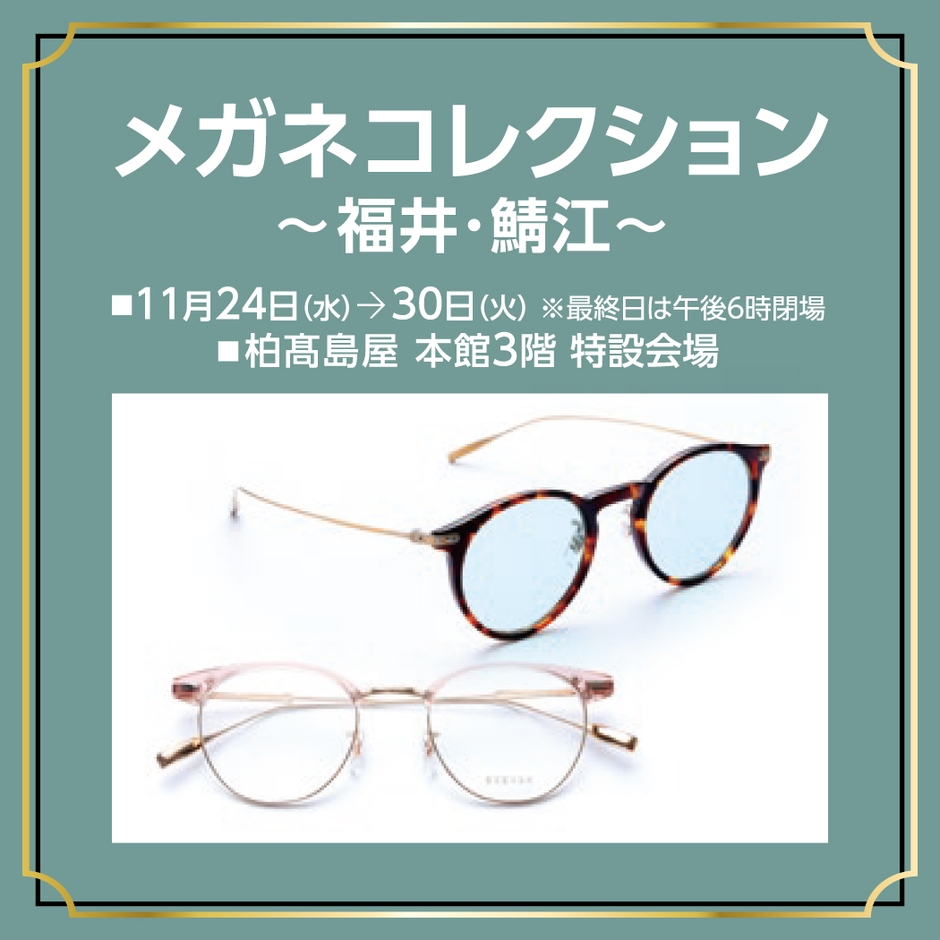 福井・鯖江のメガネ職人とデザイナーのコラボレートによるスタイリッシュなアイウェアをセレクト。この夏、リニューアルオープンした柏髙島屋 本館8階 メガネサロンの店舗コンセプトである「ヌーヴェルヴァーグ」をイメージした特設会場で、メガネとしての機能はもちろんのこと「ファッションアイテムとしての楽しさ」「お買い物の楽しさ」をご提案します。
