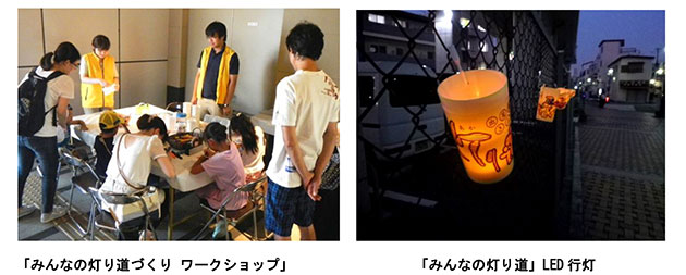 本イベント当日は、一般の方にオリジナル行灯を作成してもらう「みんなの灯り道づくり ワークショップ」のほか、「縁日コーナー」も設け、両日で約8万人の参拝者で賑わう尼崎の夏の風物詩「尼崎だんじり祭り」を更に盛り上げます。
