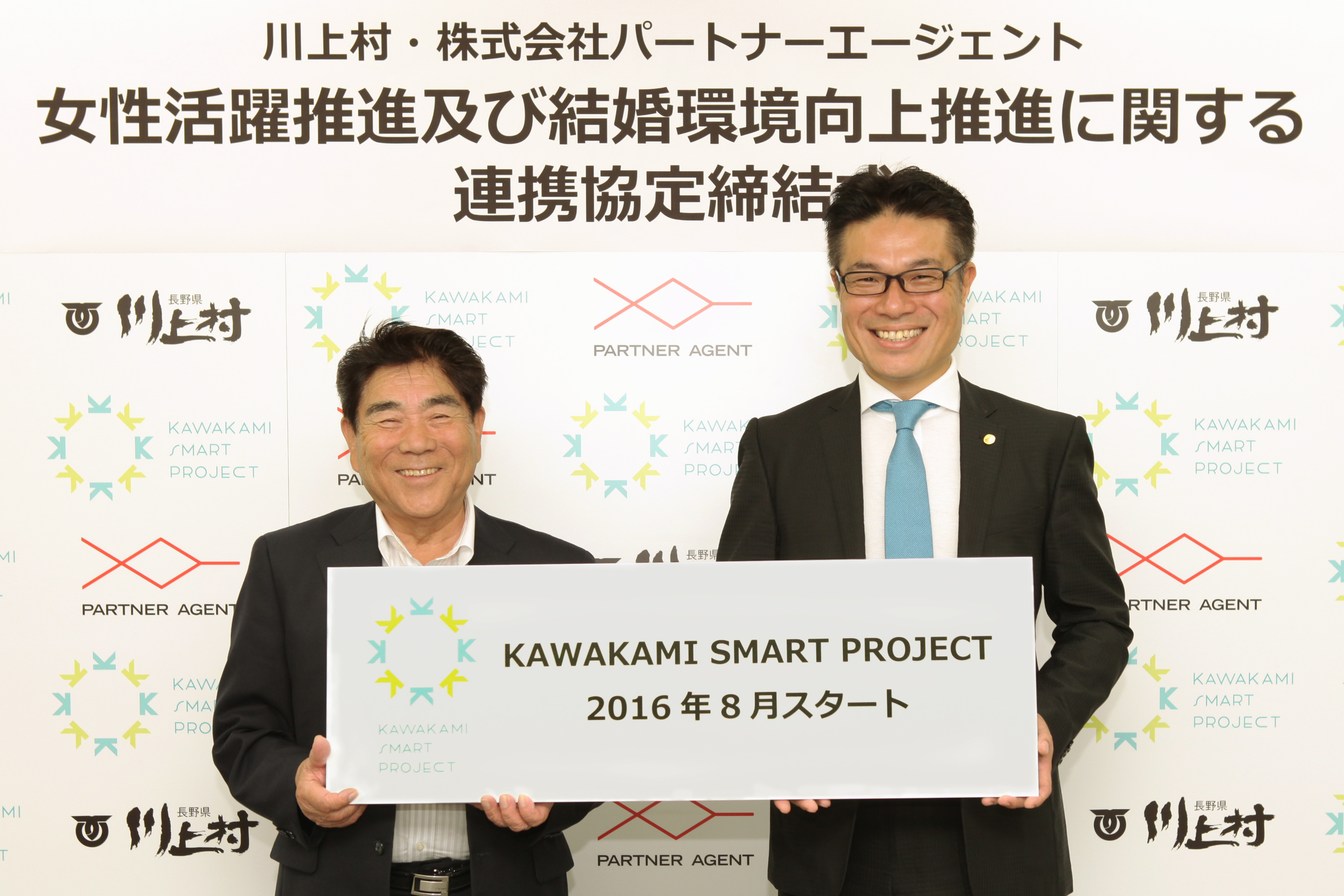 2016年8月4日 15:00川上村(長野県南佐久郡、村長:藤原忠彦)と株式会社パートナーエージェント(本社:東京都品川区、代表取締役社長:佐藤茂、証券コード:東証マザーズ6181、以下パートナーエージェント)は、官民連携の協定として「女性活躍推進及び結婚環境向上推進に関する連携協定」を、本日、締結いたしました。また、この協定により、結婚環境の向上を推進する地方創生事業である「KAWAKAMI SMART PROJECT」をスタートいたします。