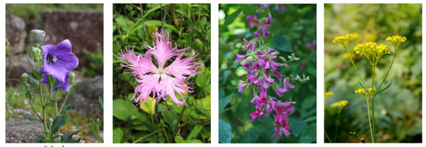 (左から)キキョウ カワラナデシコ ミヤギノハギ オミナエシキキョウ(キキョウ科)