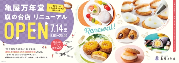 株式会社亀屋万年堂(本社・工場:神奈川県横浜市都筑区 / 総本店:東京自由が丘)は、東京都品川区にある亀屋万年堂 旗の台店 (品川区旗の台2-8-9) を2023年7月14日(金)にリニューアルオープンいたします。