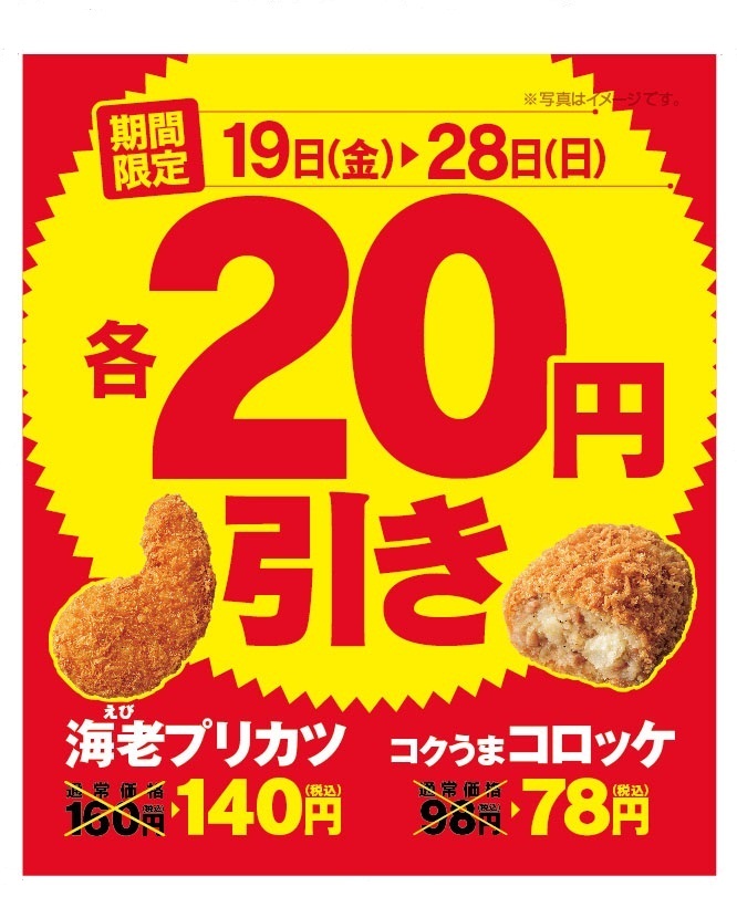 ミニストップ人気のホットスナックがお得! コクうまコロッケ・海老プリカツ20円引きセール実施! 本日8月19日(金)~8月28日(日)まで
