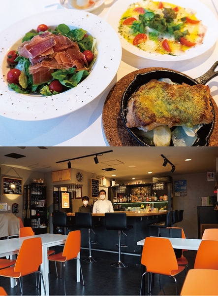 ビストロ バル ロランジェ(以下ロランジェ)は、船橋市市役所近く国道14号沿いのビルの3階にある常連さんで賑わうビストロバルだ。 同店を経営するのは中村真也さん夫婦。 “お酒と食事を楽しめて居心地のいいビストロバル”をコンセプトに、ドリンクメニューは「ハートランド」の生ビールや、ワイン、ウイスキー、カクテルなど拘ったお酒が豊富に揃う。お酒はそんなに飲めないけど、「あそこのグリルのお肉が食べたい!」と、お食事目当ての常連さんが多いのも特徴で、つまめるメニューから本格的グリル料理にピザやパスタまで、幅広いメニューを取り揃える。 ご夫婦が大好きなオレンジ色とフレンチのエッセンスから、フランス語で「大きなオレンジ」という意味の「ロランジェ」と名付けられた店内は、カウンター席とテーブル席がゆったりと配置され、昼は明るく、夜は大人の雰囲気になるよう演出されていて、とても居心地のよいコンセプト通りのお店です。